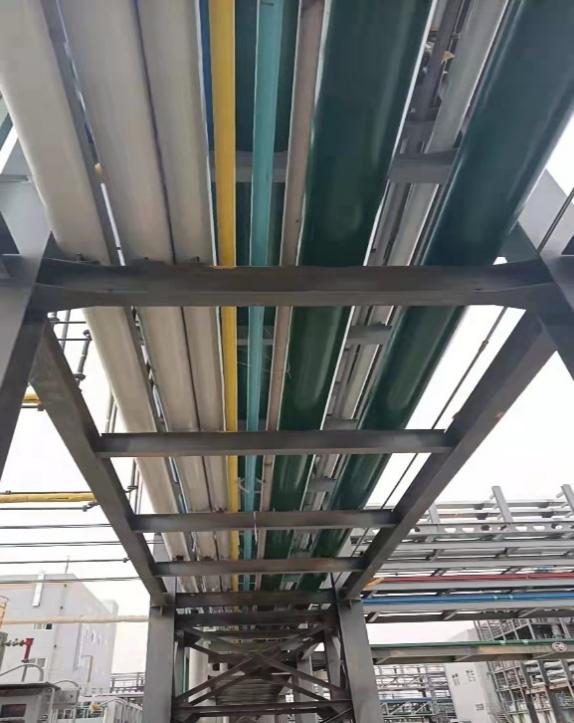 目前保溫用各類彩鋼板共計使用約35000㎡,各類管線保溫絕熱材料共計使用約30000m,各類設備保溫材料約400m3。為確保投產順利平穩(wěn)運行,項目人員對剩余未保溫設備、管線加速保溫,逐一銷項,在此期間,為規(guī)范業(yè)主公司安全警示標志管理,色標統(tǒng)一規(guī)范,結合現場實際情況,為各類管線穿上不同的“衣服”。