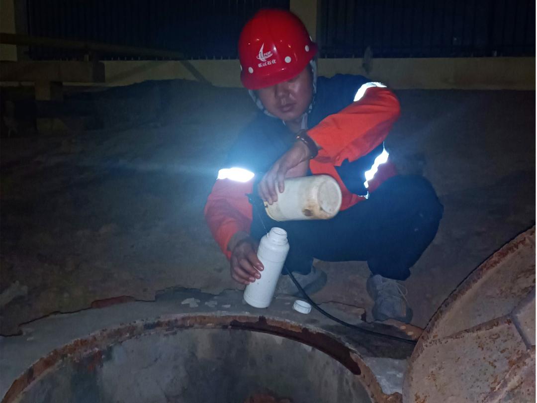 “緯五十三路正常,我們?nèi)ソ?jīng)三十五路看看……”。為保障化工園區(qū)雨污水管網(wǎng)的正常運行以及園區(qū)入駐企業(yè)的正常排污,拉井蓋、取樣、檢查是石化集團(tuán)博石環(huán)保公司管網(wǎng)巡檢人員日常工作的縮影,他們更是園區(qū)綠色發(fā)展的衛(wèi)士。
