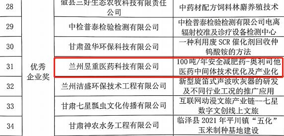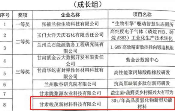 近日,從第十一屆中國創(chuàng)新創(chuàng)業(yè)大賽(甘肅賽區(qū))組委會獲悉,蘭州新區(qū)專精特新化工產(chǎn)業(yè)孵化基地的兩家入駐企業(yè)——甘肅峻茂新材料科技有限公司和蘭州昱重醫(yī)藥科技有限公司分別榮獲第十一屆中國創(chuàng)新創(chuàng)業(yè)大賽(甘肅賽區(qū))優(yōu)秀企業(yè)獎。