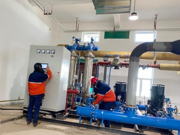 (公輔班組進行換熱機組溫度調(diào)試)