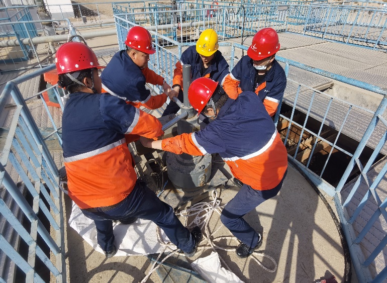 為保障廠區(qū)系統(tǒng)設(shè)備、工藝管線運(yùn)行正常,確保生產(chǎn)順利進(jìn)行,博石環(huán)保公司組織檢維修人員、安全員利用近期園區(qū)企業(yè)排水量小的間隙,對(duì)廠區(qū)運(yùn)行設(shè)備、工藝管線等逐項(xiàng)進(jìn)行故障排查。