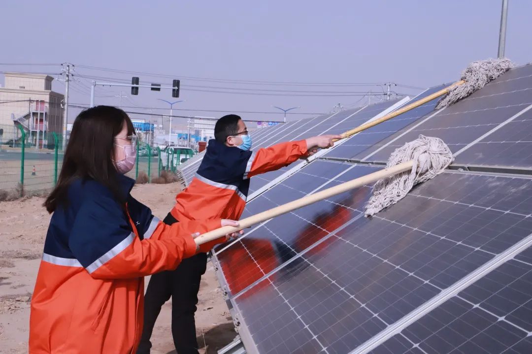 受降雪和沙塵天氣影響,石化勝利光伏電站光伏板表面積塵較多,為提高發(fā)電率,保障光伏發(fā)電系統(tǒng)安全、高效運(yùn)行,專精特新公司黨支部組織黨員干部職工開展為期2天的“擦亮光伏板,建功新能源”主題黨日活動(dòng)。